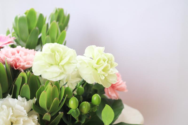 地域や宗教によって多少の違いはありますが、過度な装飾を施さず整った印象に仕上げることが多いです。そのため、一般的な祝い花とは雰囲気が大きく異なり、葬儀という場にふさわしい静謐な空気を保つ役割を果たしています。